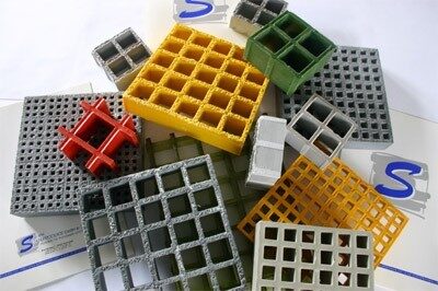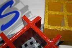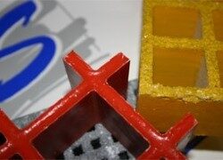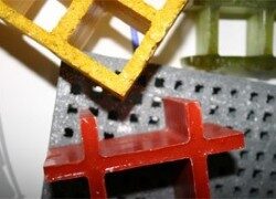 GFK-Gitterroste werden aus GlasFaser verstärktem Kunststoff gegossen. Aus den Komponenten Harz, Glasfaser, Härter und Farbstoffe entsteht der Verbundwerkstoff GFK.