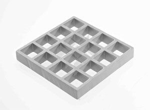 Optisch aufgebaut wie Vollroste, verläuft beim GFK-Gitterrost der Tragstab sowohl in Längs- wie auch in Querrichtung. Dadurch ergibt sich eine in beide Richtungen gleichmäßige Belastungsmöglichkeit.