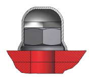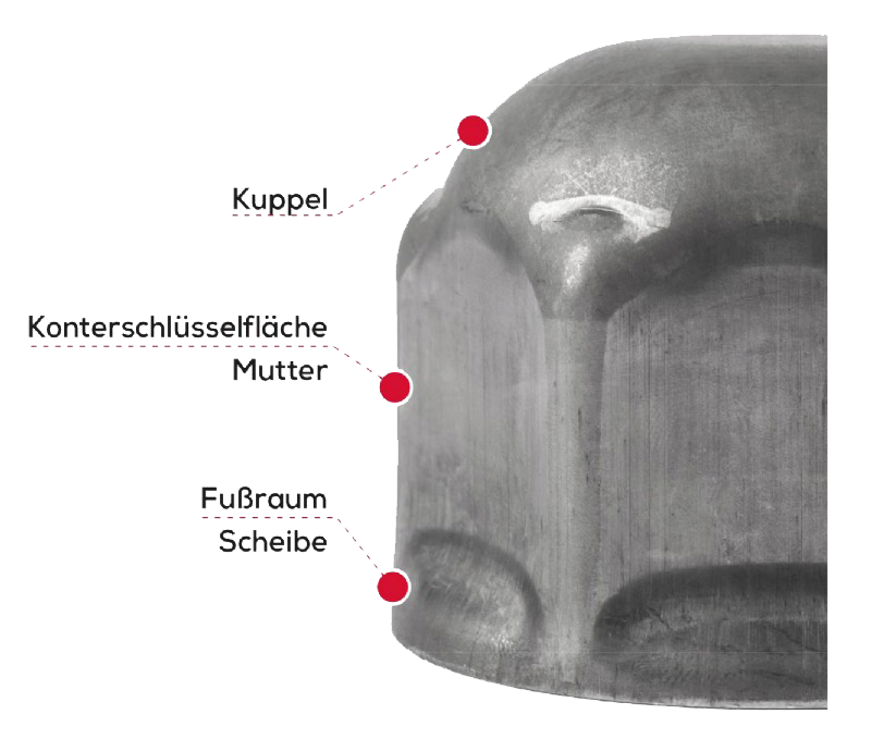 Nach dem Aufbringen des vollen Anziehmoments entsteht über die Vorspannkraft eine Klemmwirkung, die einen sicheren Sitz der Verbindung gewährleistet. Im montierten Zustand sind nur noch der Kopf und der Bund zu sehen. Anzugsmoment entnehmen Sie den Datenblättern der Schraubenhersteller.