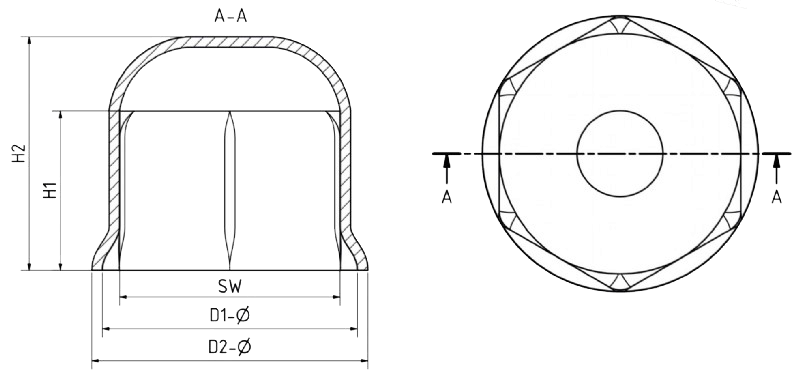 | Schraubengröße HV | Artikelnummer | SW | D1-Ø | D2-Ø | H1 | H2 | Material | Stückgewicht |