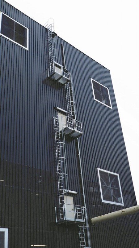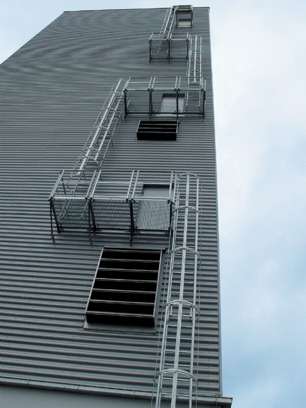 Ortsfeste Steigleitern und Notleiteranlagen haben den Vorteil des geringen Platzbedarfes und der dauerhaften Nutzung.