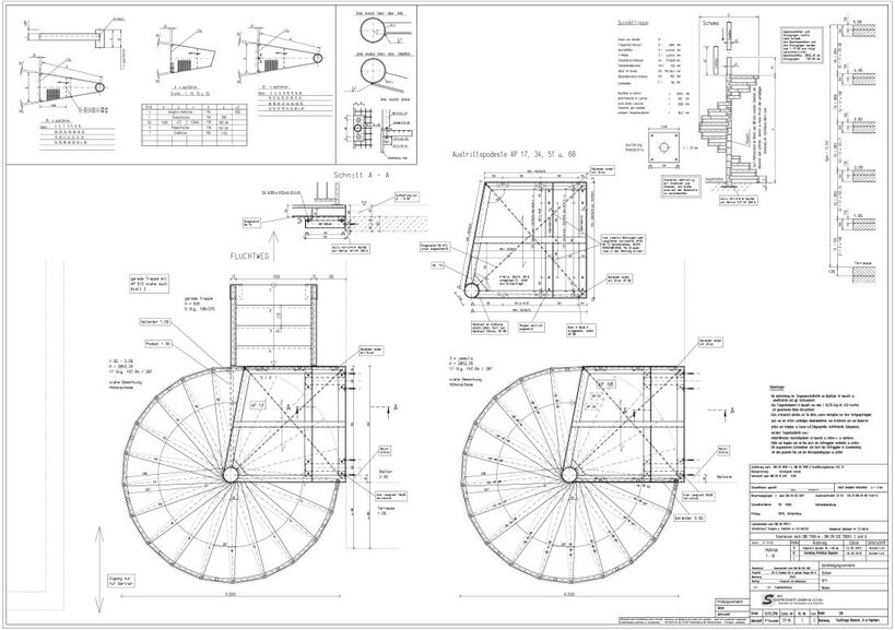 Spindeltreppen-Stufen mit Rohrhülse Spindeltreppen-Stufen mit Rohrhülse Das daraus entstehende optimale Steigungsverhältnis ist momentan 17/29 cm (Höhe/Tiefe) = Steigungswinkel ca. 30°