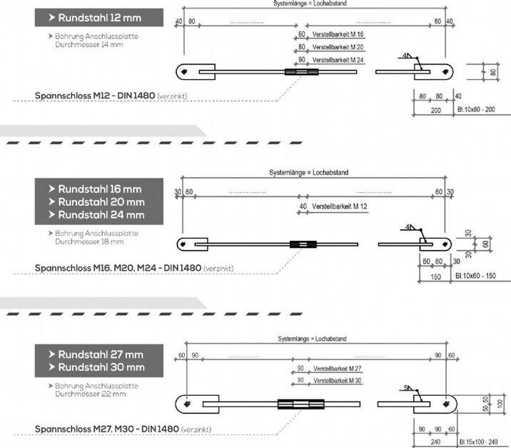HINWEIS: Rundeisen sind in die * Anschlussplatte eingeschweißt (nicht aufgeschweißt)
