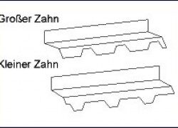 Gezahnte Kantteile können in den Varianten "Großer Zahn" und "Kleiner Zahn" hergestellt werden. Die entsprechende Angabe ist bei der Bestellung zu vermerken. Beidseitig gezahnte Bleche in der jeweiligen Ausführung sind auf Anfrage lieferbar.